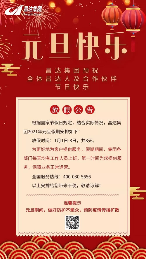 昌達集團元旦假期公告